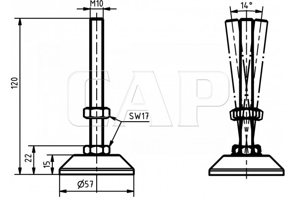 Höhenmäßig stufenlos verstellbare Bauteile für die Nivellierung von Konstruktionen und Anlagen. Durch die Kugel und die Kugelpfanne ist ein Niveauausgleich ("NA") bis zum angegebenen Winkel möglich. Zur Erreichung der min. Fußhöhe, ist eine Entfernung der Kontermutter nötig.