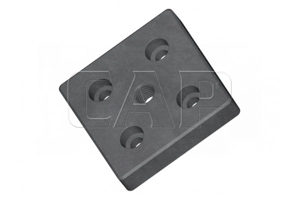 Die Fußplatten sind im Zink-Druckgussverfahren, allseitig pulverbeschichtet und lassen sich stirnseitig in den Kernbohrungen der Profile verschrauben. Gewinde mit verschiedenen Durchmessern ermöglichen die Aufnahme von Ringschrauben. Stellfüßen, Rollen und anderen Elementen.
