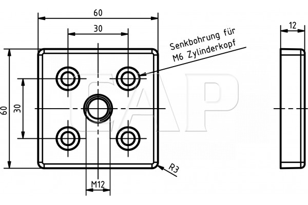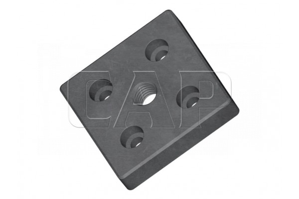 Die Fußplatten sind im Zink-Druckgussverfahren, allseitig pulverbeschichtet und lassen sich stirnseitig in den Kernbohrungen der Profile verschrauben. Gewinde mit verschiedenen Durchmessern ermöglichen die Aufnahme von Ringschrauben. Stellfüßen, Rollen und anderen Elementen.