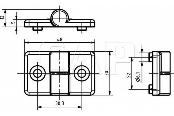Die Scharniere PA sind einfache Bauelemente für leichte Türen und Klappen. Sie sind mit einer Verdrehsicherung versehen, die in Profilnuten eingreift. Flächenelemente, die mit diesen Scharnieren befestigt werden, müssen mit entsprechenden Durchgangsbohrungen bearbeitet werden.