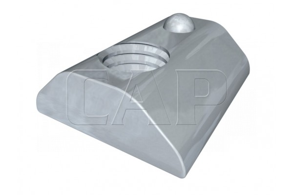 Universelles Befestigungselement für höhere mechanische Ansprüche, das an jeder beliebigen Stelle der Profilnuten einschwenk- und verschiebbar ist. Der Nutenstein ist mit einer selbstfixierenden, federnden Kugel ausgestattet.