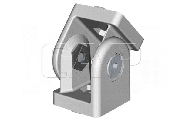 Zur Verbindung von Profilen unter einem Winkel im Bereich von 180°. Das Gelenk kann auch als schweres Scharnier eingesetzt werden (Verstellbereich ±90°). In Verbindung mit den Distanzringen sind die Gelenke als Scharniere frei beweglich. Durch Entfernen der Distanzringe können sie als starre Winkelelemente eingesetzt werden, z.B. als Verstrebung und sind bei Bedarf auch verstiftbar.