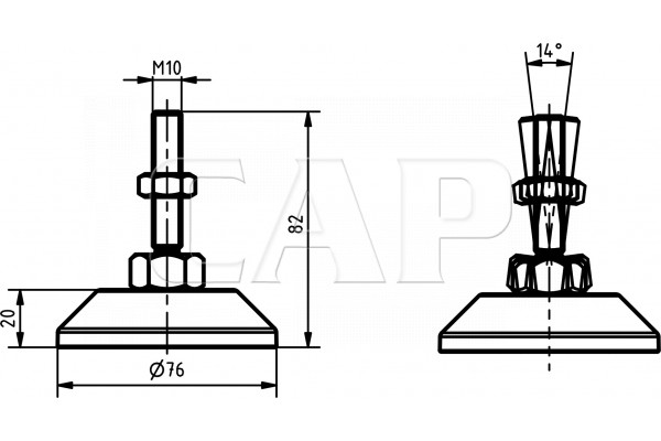 Höhenmäßig stufenlos verstellbare Bauteile für die Nivellierung von Konstruktionen und Anlagen. Durch die die Kugel und die Kugelpfanne ist ein Niveauaus-gleich ("NA") bis zum angegebenen Winkel möglich. Zur Erreichung der min. Fußhöhe, ist eine Entfernung der Kontermutter nötig.