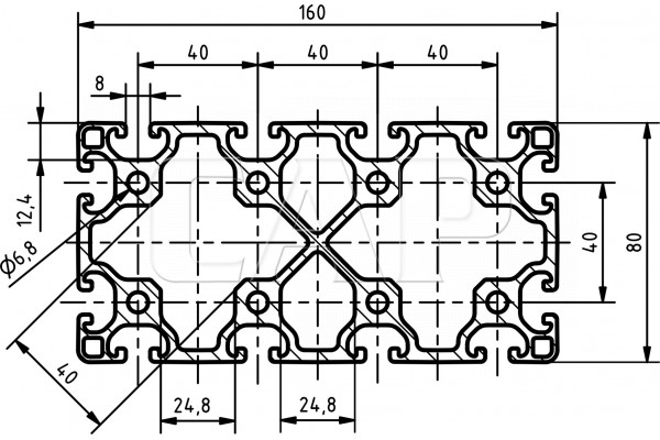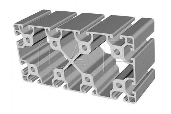 Universalprofil für normal belastete Konstruktionen. Längsnuten an allen vier Seiten für den Einsatz von Nutensteinen.