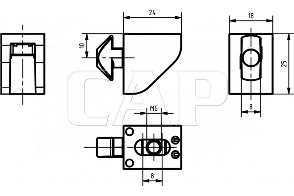 Befestigungselement dessen Höhe durch Distanzplatten angepasst werden kann. Der Uniblock lässt sich nachträglich in bestehende Konstruktionen durch das Einsteck-Dreh-Prinzip einbauen.